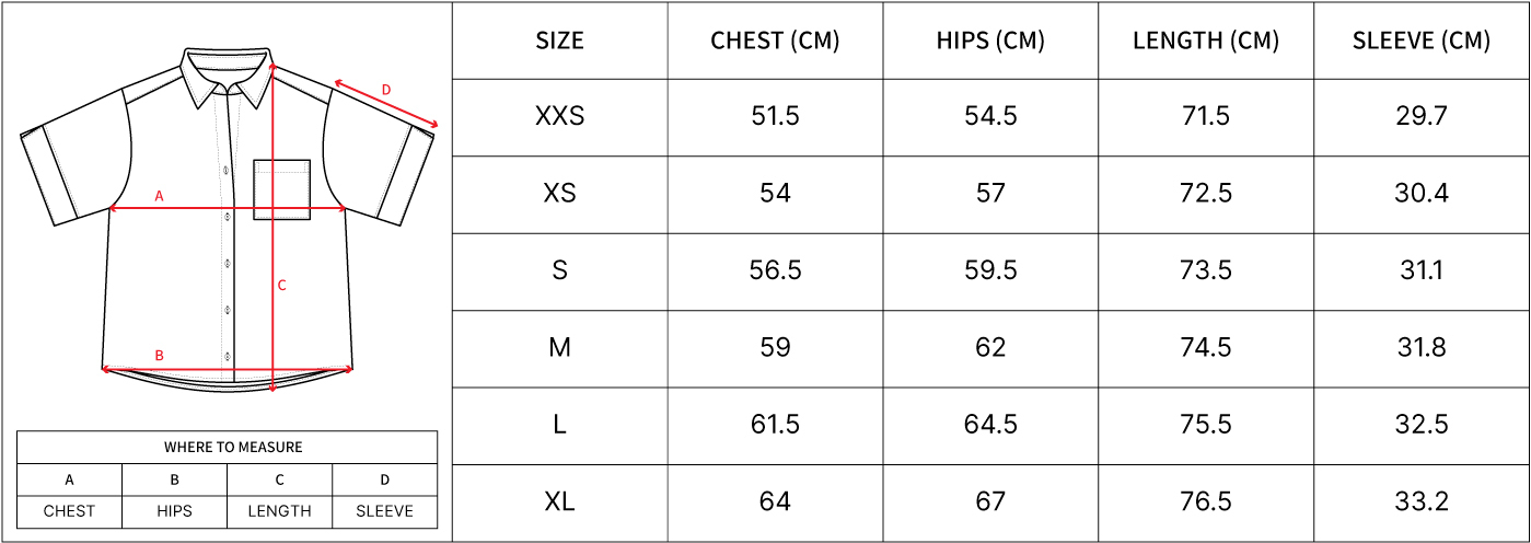 *Measurements taken from size S